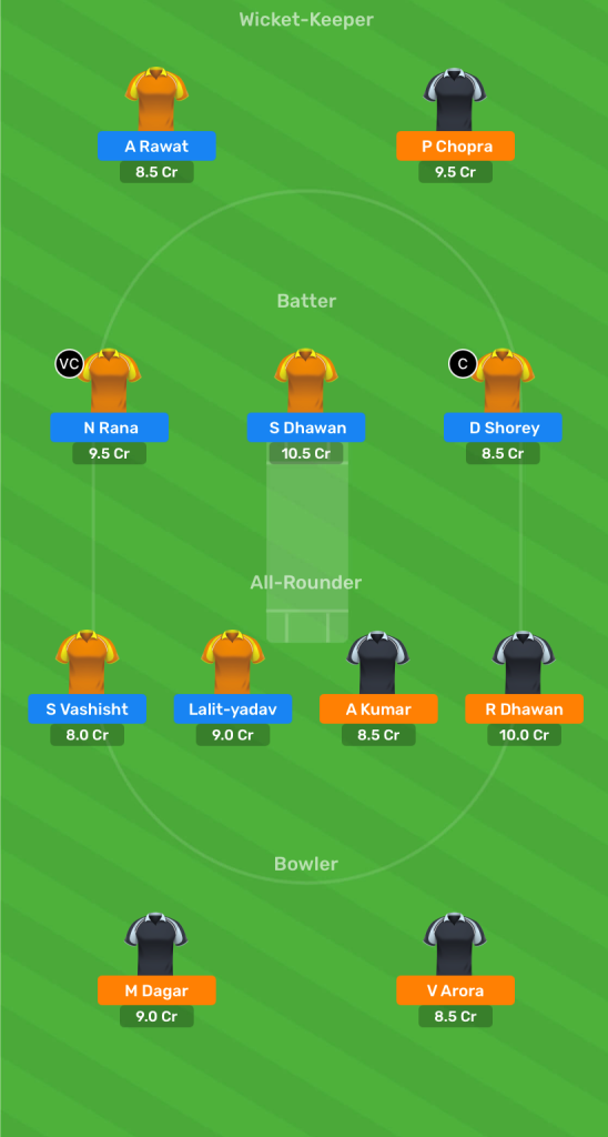 Shikhar Dhawan, Dhruv Shourey, Himmat Singh, Nitish Rana, Kshitiz Sharma, Lalit Yadav, Anuj Rawat, Pradeep Sangwan, Shivank Vasishtha, Simarjit Singh, Kulwant Khejroliya.