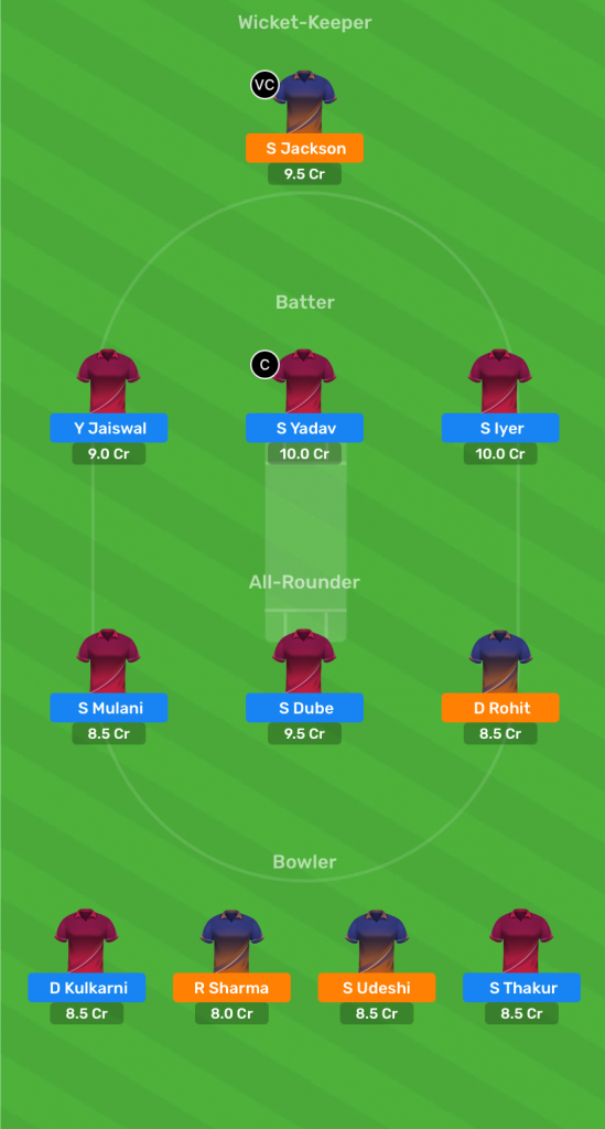 Shreyas Iyer, Prithvi Shaw, Yashasvi Jaiswal, Suryakumar Yadav, Sarfaraz Khan, Aditya Tare, Shivam Dube, Atif Attarwala, Shams Mulani, Dhawal Kulkarni, Tushar Deshpande