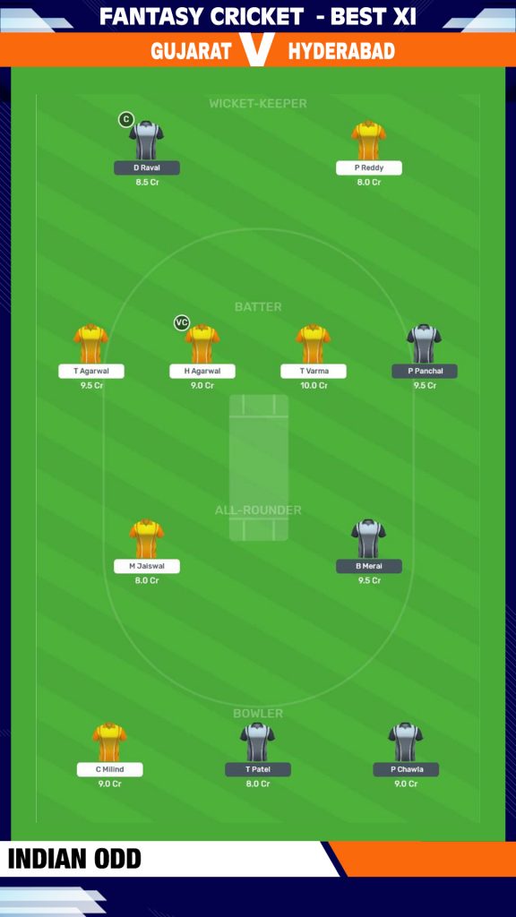 Dhruv Raval (wk), Priyank Panchal (c), Bhargav Merai, Het Patel, Chirag Gandhi, Ripal Patel, Piyush Chawla, Chintan Gaja, Tejas Patel, Hardik Patel, Arzan Nagwaswalla
