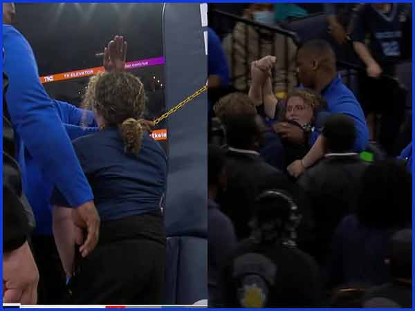 She wore a T-shirt that read, "Glen Taylor Roasts Animals Alive." The woman was then unchained by security officials before five people carried her out of the main area to the cheers of fans inside FedExForum. The protest was related to the previous event that took place during Timberwolves’ play-in game against the Clippers in Minneapolis on Tuesday night where a woman tried to glue her hand to the court.