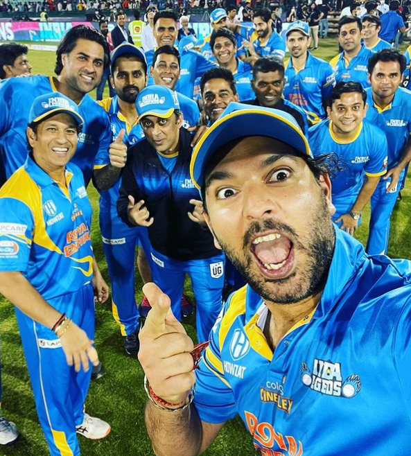 Before uploading the video of his Bahubali-like welcome, Yuvraj shared a picture with his India Legends teammates. Along with the picture, he wrote, “Well done youngsters !!! congratulations #indian legends.”
