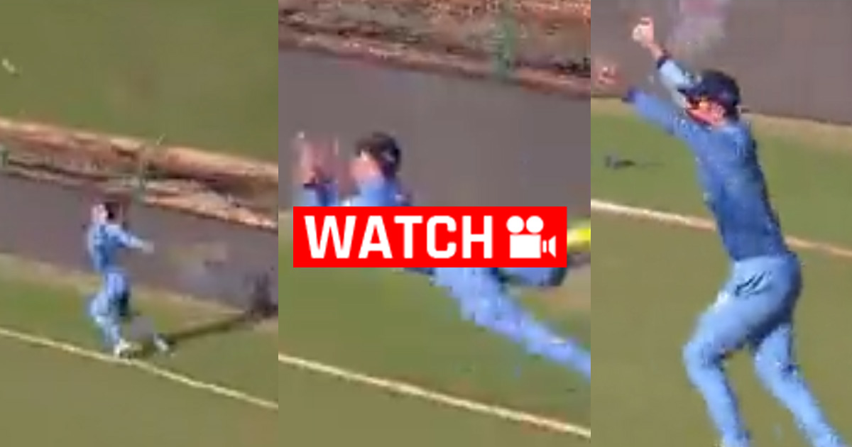 As the batter pulled Titans’ spinner Harmer, the ball flew quickly to the deep midwicket region. Brevis who was stationed to guard the boundary leapt to stop the ball from going over the ropes. But as he sensed that he himself was going over the boundary, Brevis got rid of the ball seconds before he hit the ropes. The fielder then dived inside the rope to complete the catch.