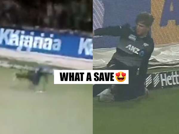 India skipper Rohit Sharma was looking in sublime touch and had timed a flicked brilliantly as the ball seemed to be racing towards the on-side fence. However, Phillips covered quite a distance from his position at square leg and had to put in the dive. However, as the ball was still being carried to the boundary with the momentum on it, the Kiwi player gave it one desperate kick to save one run for his team.