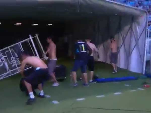 Angry Gremio fans on Sunday night invaded the pitch following their side's 1-3 loss to Palmeiras in Brasileiro Serie A at Arena do Gremio. Notably, the fans rushed towards the VAR cockpit in an attempt to destroy it. They threw and broke everything they got before police arrived at the scene and cleared them off. Given that the violent act got recorded on camera, the video of the same is now going viral on social media.