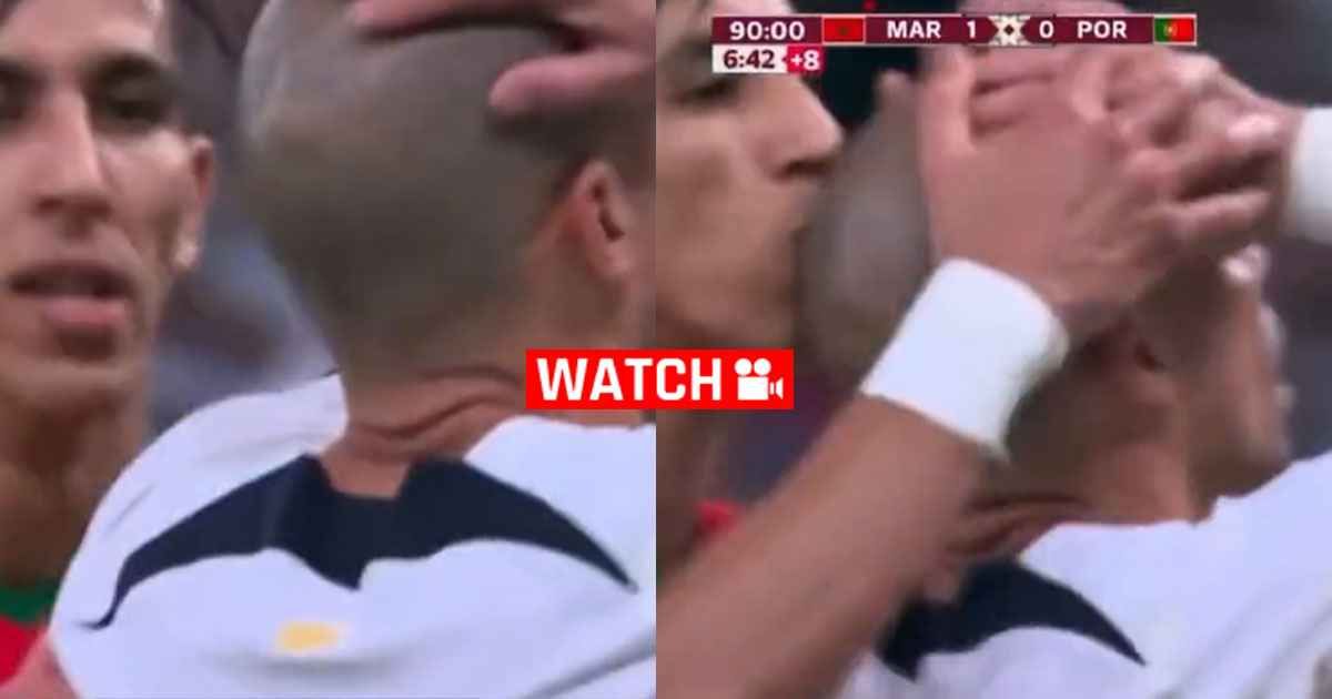 However, after the miss, Moroccan defender Jawad El Yamiq surprised a lot of fans as he kissed the bald head of Pepe immediately after his change. The video of the incident has gone viral, where the Portuguese veteran has his hands on his head and is greeted by El Yamiq with a kiss.