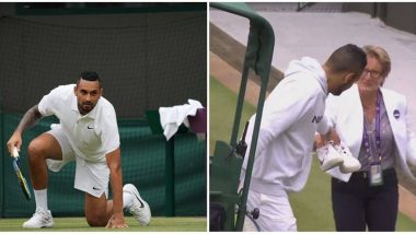 Australian tennis ace Nick Kyrgios had a hilarious ‘oops moment’ ahead of his Wimbelodm game against Felix Auger Aliassime. Though the Australian thought that he was all prepped up for his third-round match at Wimbledon, he realized that he left his tennis shoes in the locker room. “I left my tennis shoes in the locker room. Good start,” Kyrgios mockingly said. This caused a slight delay in the game and the players were forced to hang in there for a while before they could start their warm-up.