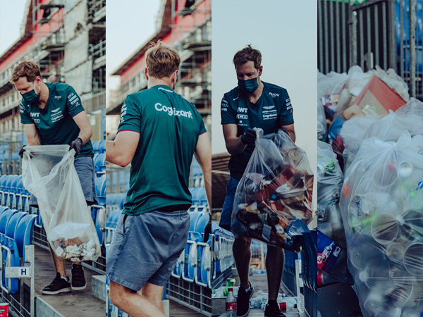 However, despite an ordinary outing, the Aston Martin driver stood out from the rest, as he encouraged a bunch of fans to clean the stands after the end of the race and led the campaign himself. The four-time world champion's initiative was made public on social networking sites by the fans who shot a video of him with his mask and gloves on, picking up garbage from the stands and putting it in the trash bins.