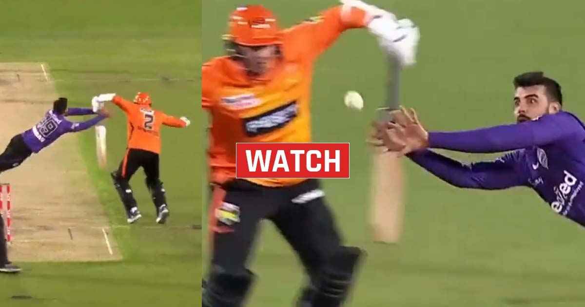 The B ig Bash League fixture between Perth Scorchers and the Hobart Hurricanes has gone down to the wire. Adding some magic to this late drama, Pakistani all-rounder Shadab Khan held on to one of the best catches towards the end of the 18th over. Bowling to Aaron Hardie, Khan sent out a considerably slower ball, pushing Hardie to close the bat early.