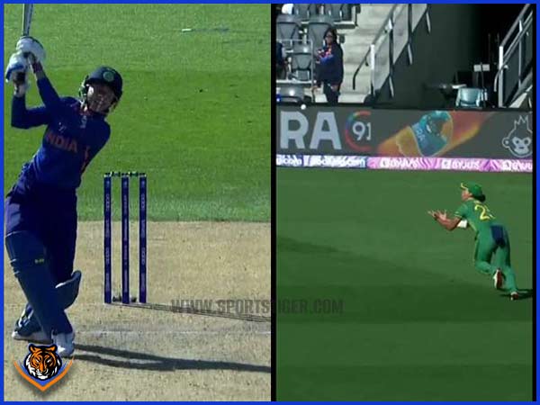 Tryon grabbed the catch in the 32nd over of the Indian innings. Masabata Klaas was bowling and Mandhana made some room and tried to loft the ball over mid-off but she did not get enough power behind the shot. Tryon flew towards her right and stunned Mandhana with her splendid diving catch.