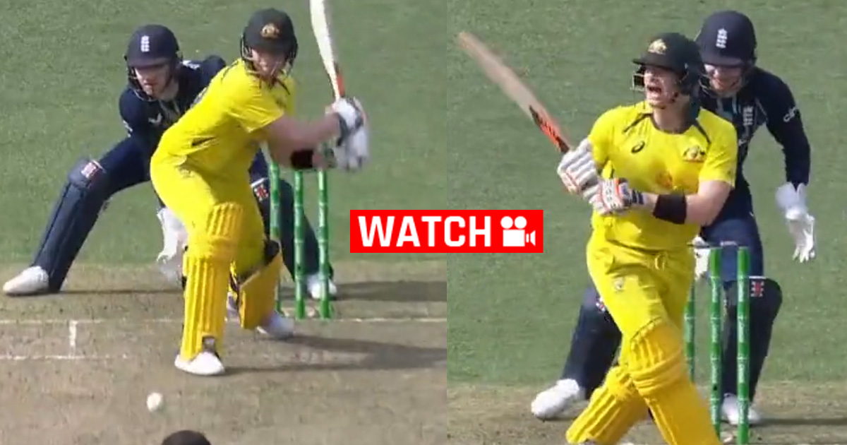In the 32nd over of the first innings, Smith tried to play Rashid’s loopy outside off-stump delivery, going for a reverse slog hoping it clears over off-side. However, he missed it completely, with Sam Billings, who was placed behind the wickets grabbing it. He looked frustrated and yelled for missing an extra ball.