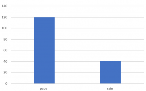 1st inns: Pace - 43 wickets (486.5 overs); Spin - 11 wickets (131.2 overs)