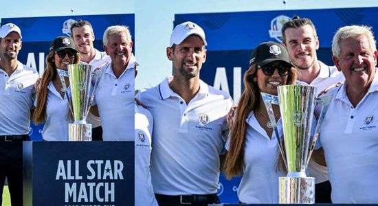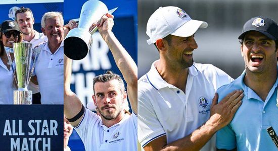 Team Montgomerie including Gareth Bale, Novak Djokovic among others lift All-Star Trophy.